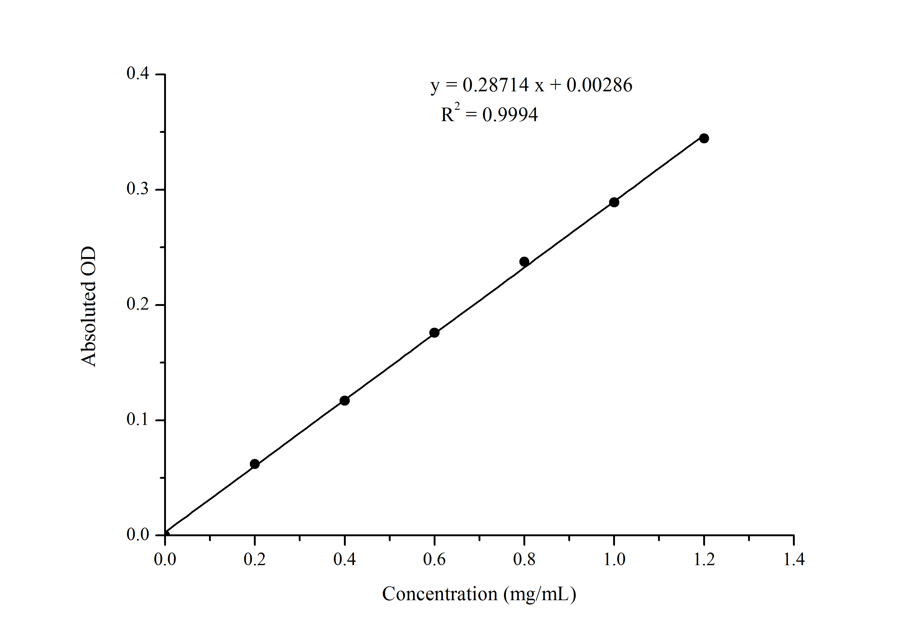 Test Principle: Coomassie brilliant blue G-250 is red under the free state, and it has the maximum absorbance at 465 nm. When the Coomassie brilliant blue G-250 combined to protein, the compound will have the maximum at 595 nm. The absorbance value is directly proportional to the protein content, so the concentration of total protein can be calculated directly by measuring the OD value at 595 nm.